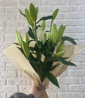Великолепный букет из лилий в нежной упаковке, как настоящий символ изысканности и изящества. Каждый цветок, словно нота в нежной мелодии, раскрывает свою красоту и утонченность. Лилии, эти нежные цветы, приносят в дом атмосферу умиротворения и гармонии. Их аромат наполняет пространство нежностью и чистотой, словно лаская душу своей неповторимой магией. Упаковка букета, словно облачко из мягкого тюля, подчеркивает его изысканность и нежность, создавая вокруг цветов атмосферу загадочности и романтики.
