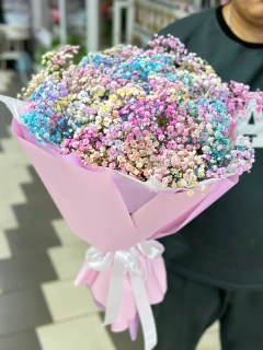 В букете "Пушистик" собраны самые нежные и восхитительные яркие разноцветные гипсофилы. Их легкие волоски, словно тонкий тюль, придают композиции особую воздушность и легкость. Этот букет станет идеальным презентом для любимой и поможет выразить всю нежность и тепло вашего чувства. Нежная упаковка добавляет романтичности и завершает образ волшебного цветочного замкнутого сада, который обещает принести радость и счастье тому, кто его получит. Можете быть уверены, что этот букет станет незабываемым и оставит теплые воспоминания на долгие годы.